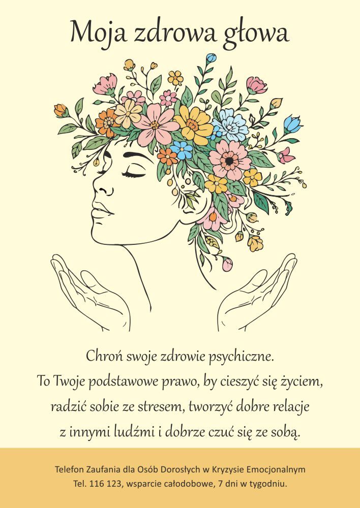 „Moja zdrowa głowa” to ogólnospołeczna kampania, której zadaniem jest promocja zdrowia psychicznego i wzmacnianie umiejętności mających pozytywny wpływ na kompetencje psychospołeczne.