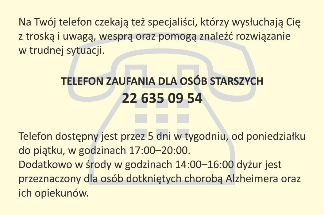 Wizytówka pomocowa dla seniorów: TELEFON ZAUFANIA DLA OSÓB STARSZYCH