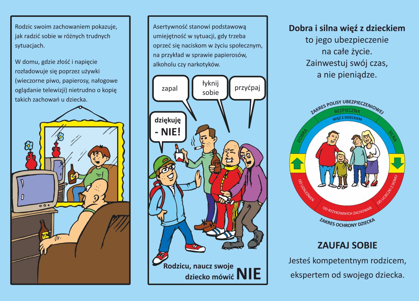Ulotka profilaktyczna dla rodziców, cztery strony:
